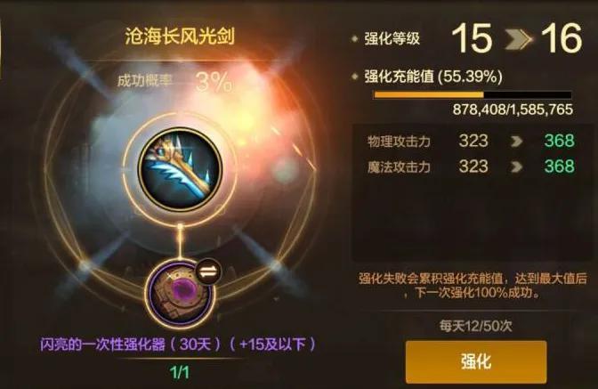 第二、每日領取的49個強化器可以攢起來,留到14上15、或者15上16的時候使用。