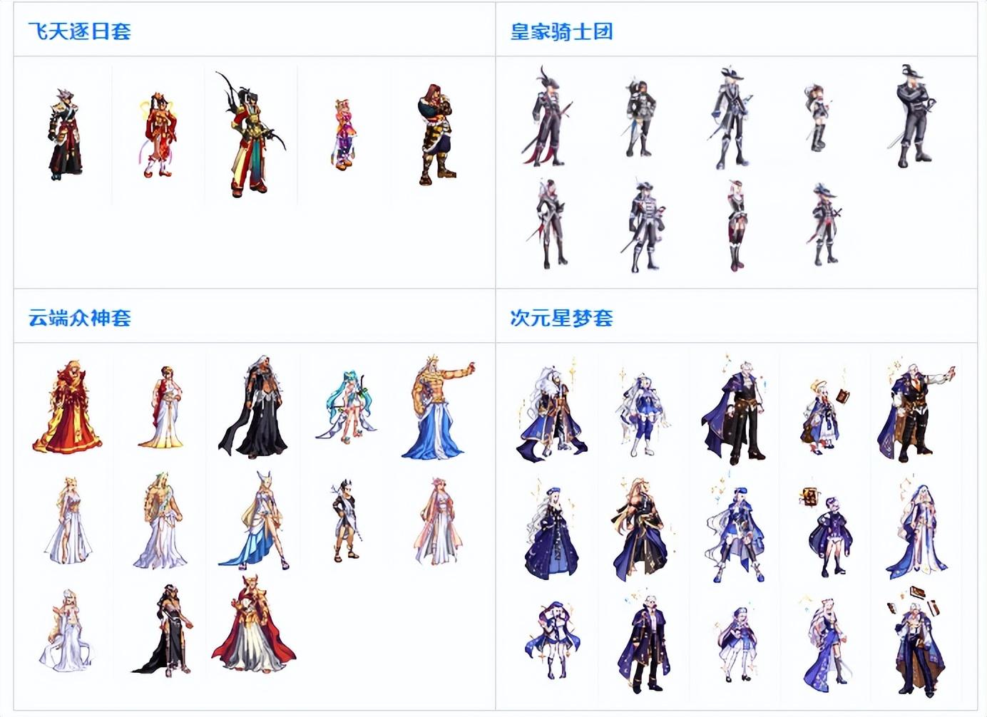 從以下4套時裝中任選其一:飛天逐日套、皇家騎士套、雲端衆神套、以及次元星夢套。