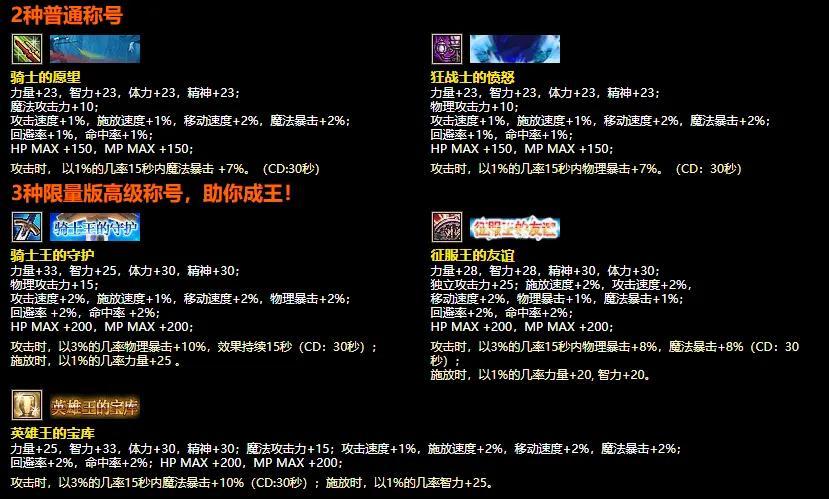 再然後就是“稱號”,有5種款式可供選擇,屬性放在如今來看肯定是不過關的,不過外觀倒是比較炫酷。