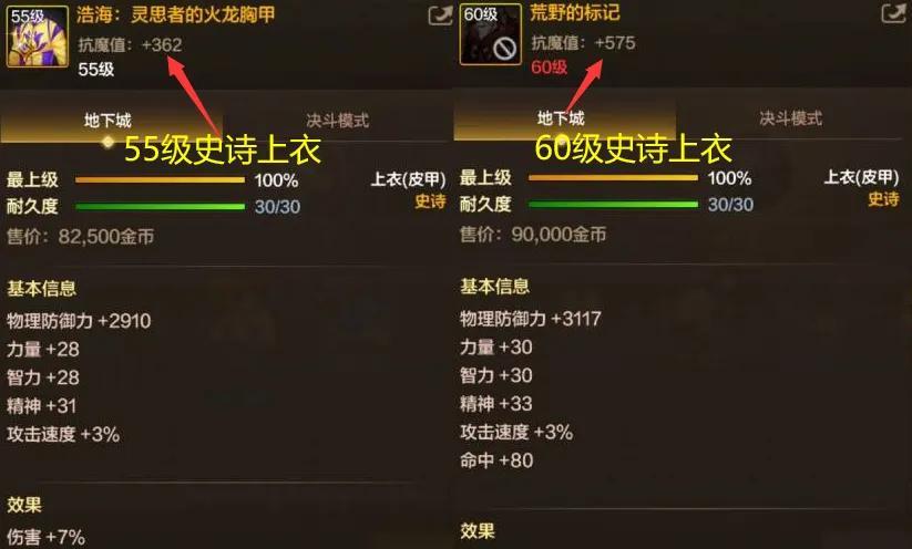 那這裏咱們就來看看,從55級裝備過渡到60級裝備,咱們到底能增加多少抗魔值?