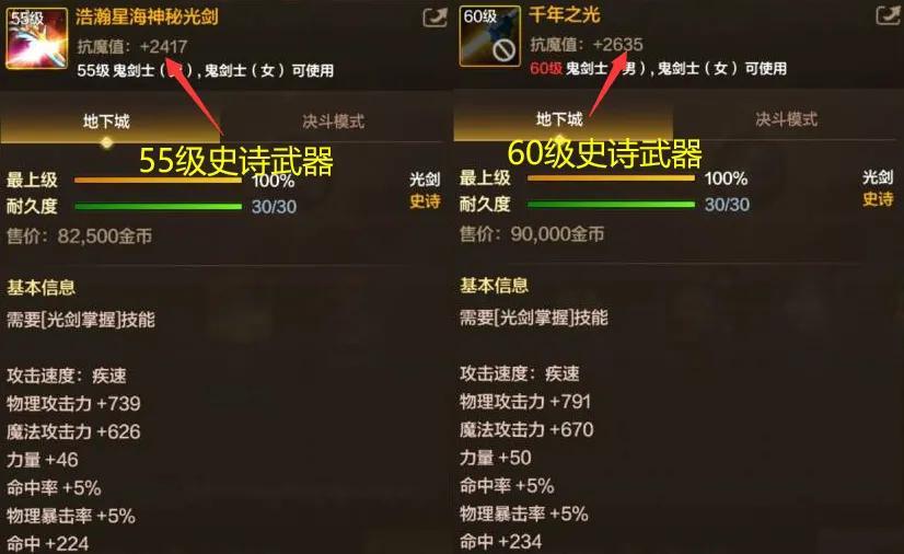 【1】55級浩海武器+2417抗魔值;60級史詩武器+2635抗魔值,相對增加218抗魔值!