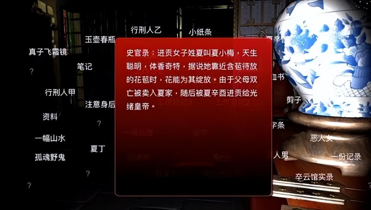 《孫美琪疑案》作爲懸疑遊戲勝在細節和氛圍感上,在碎片化敘事做得很耐心,一定程度沖淡了這些放飛自我的設定和劇情。因爲玩家舉着核能手電筒,在房間裏翻箱倒櫃,並將地板、香爐、牀縫和抽屜裏的碎片信息整合在一起的時候,需要大部分的精力來對抗恐怖詭異的畫面和臨場感,很難第一時間對劇情本身進行宏觀吐槽。