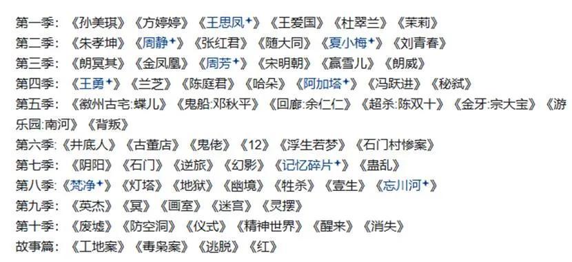 十季故事,加上一個聯動案件,三個系列專題,經由Wiki保守統計總共描繪了一百多起命案。粉絲在Process On上關聯到最新章節的人物關係圖,呈現出讓人頭疼的龐雜度。