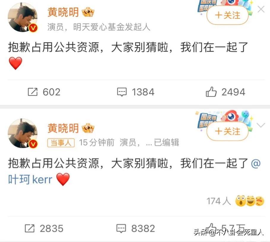 倒是黃曉明一直以來對葉珂這位新女友的態度有點微妙,9月份,黃曉明終於發文官宣和葉珂的戀情,但第一次發文的時候卻忘記提到葉珂了,之後刪掉又重發了一條。