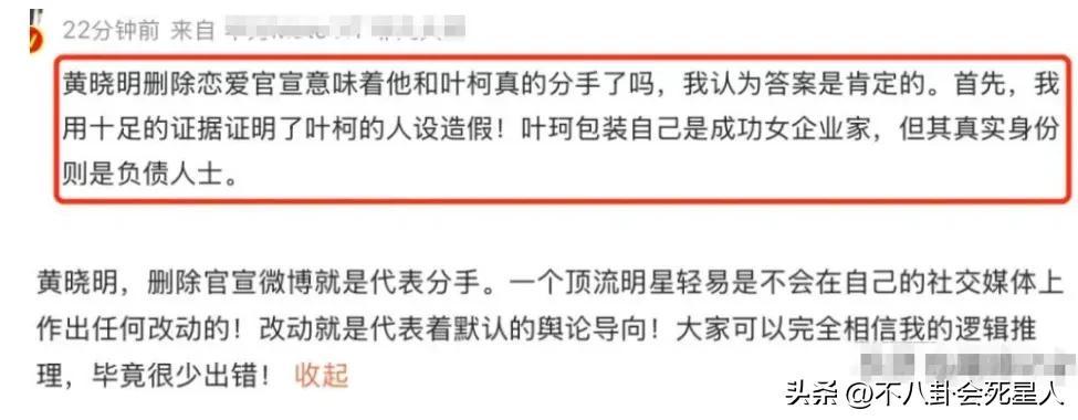 所以也有網友猜測,黃曉明和葉珂兩人的感情是沒問題的,黃曉明“撇清”和女友葉珂關係的行爲可能只是爲了減少外界的“負面影響”,畢竟他是一位公衆人物。