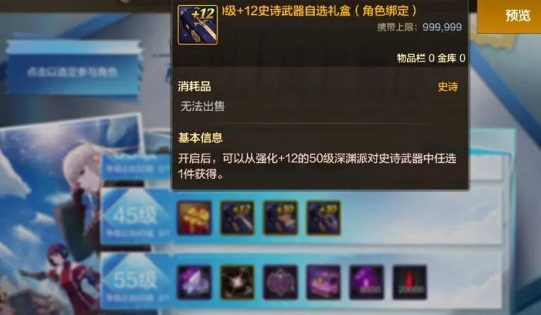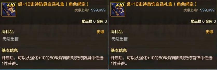 重點就在於9件自選史詩,其中武器是+12的,防具和首飾+10,所有50級深淵史詩都可以自由選擇!