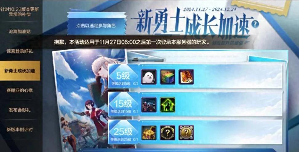 11.29更新後悄咪咪上線了一個新活動(實際11.27就應該上線的),只有第一次登錄本服務器的玩家才能參與。