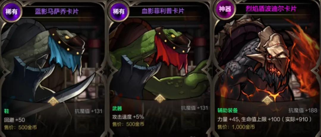 然後還有該副本內的專屬卡片,2張紫卡、以及1張輔助裝備粉卡,前期也能賣不錯價格。