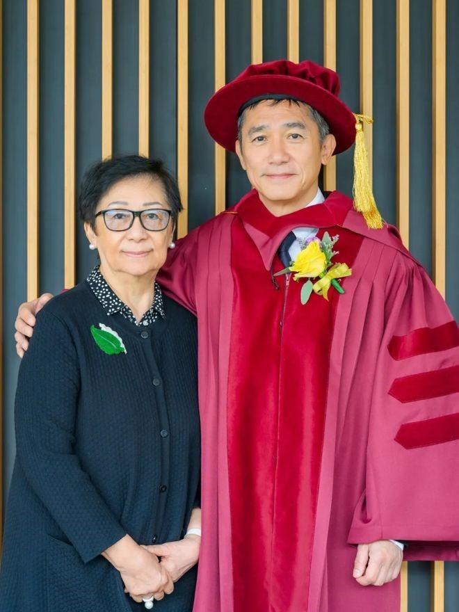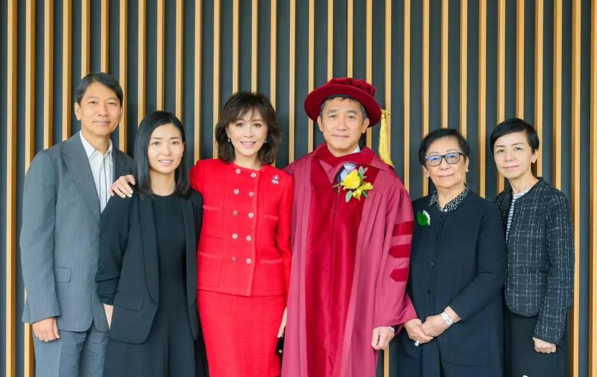 梁朝偉博士畢業全家祝賀,83歲母親優雅,妹妹長相和他如出一轍
