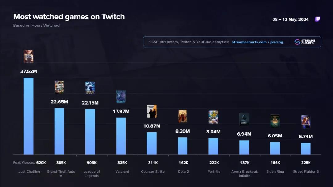 排在它前面的,除聊天直播外,就只剩下GTAV或LOL之類的怪物了。圖源Streamcharts網站