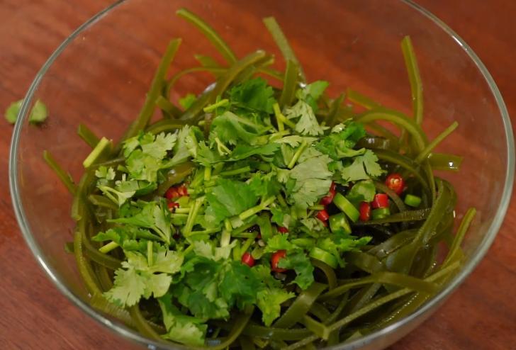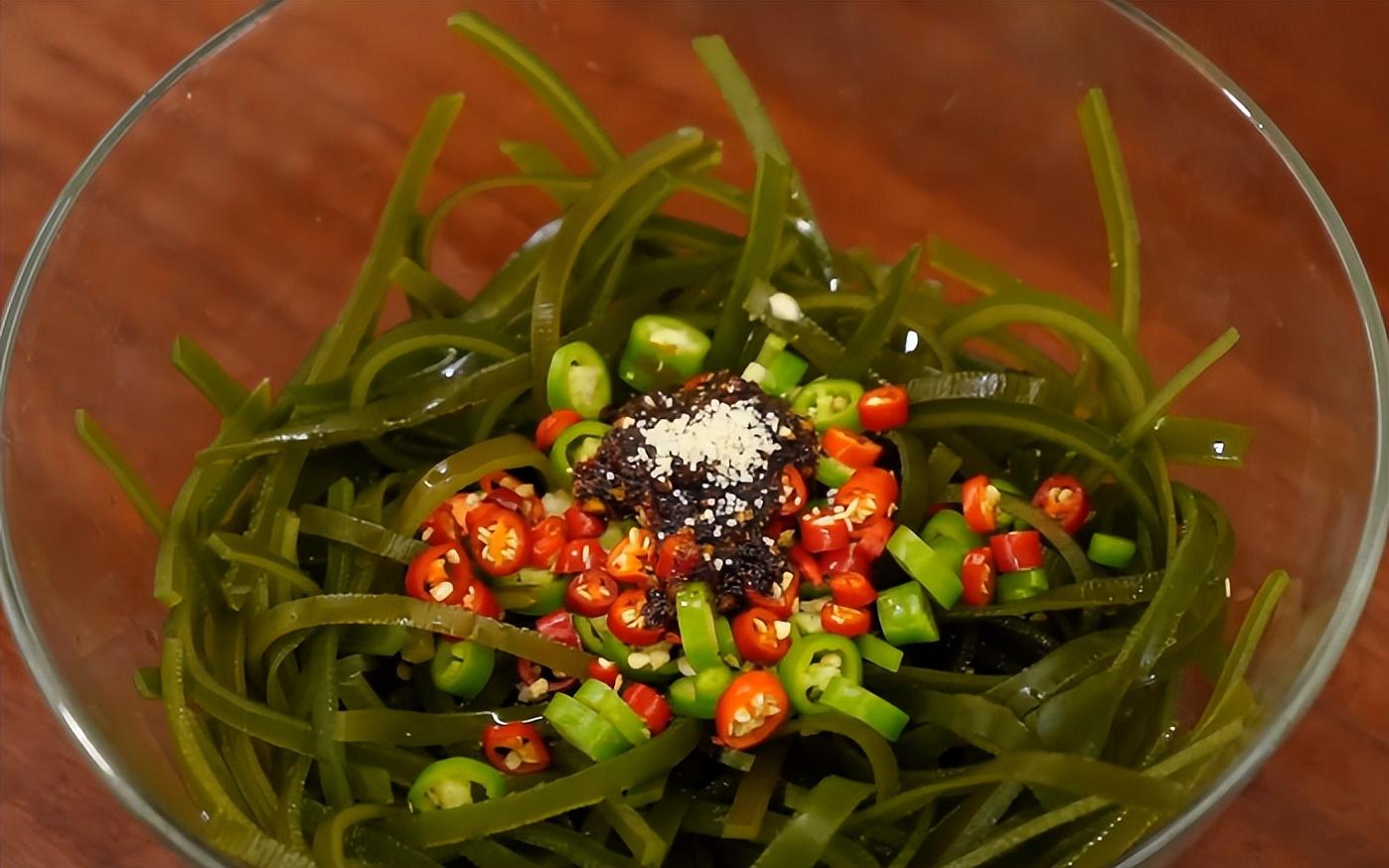 食材準備:海帶絲、香菜、青紅辣椒、大蒜。