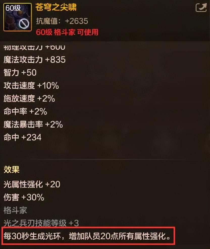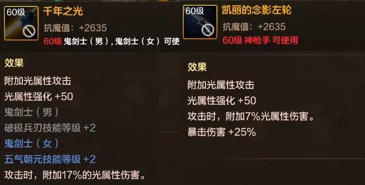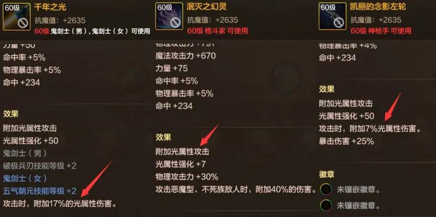 劍魂佩戴“千年之光”,自帶光屬性攻擊、17%光屬性傷害。