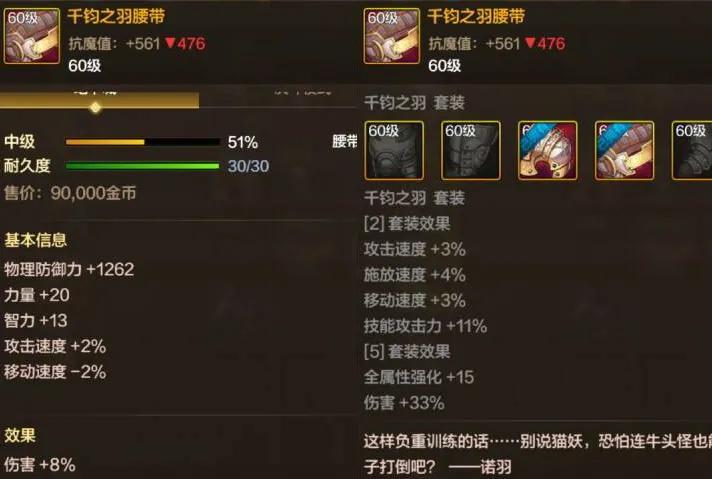 【2】千鈞上衣+腰帶:可提供18%技攻、11%技攻,3%攻速,適合輕甲職業。