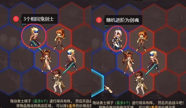 (2)將2個相同職業的棋子拖在一起即可升級,3個相同棋子可以進階!