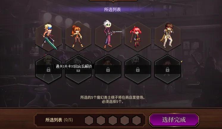 遊戲開始只能選擇5個棋子進行戰鬥,不同棋子的技能屬性均有所不同,大體上可分爲近戰和遠程2類棋子。