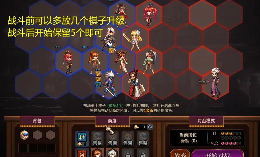 (1)戰場上隨着階段晉升可擺放更多棋子,但揹包中只能存放3個棋子,多餘棋子只能賣掉;