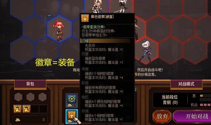(3)徽章,也就是遊戲中的“裝備”,可以放在棋子上增加屬性,每個棋子最多可佩戴4個徽章。