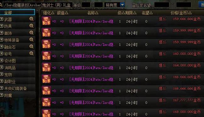 不過目前只有男鬼劍和女鬼劍是這個價格,女格鬥和男聖職者整個拍賣行竟然都沒有貨!