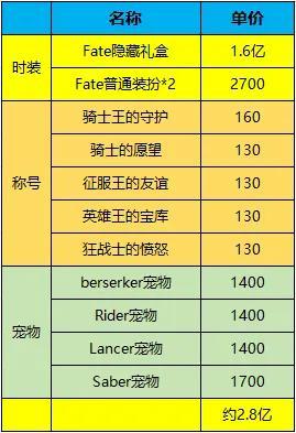 【1】Fate隱藏裝扮:售價約1.6億金幣!