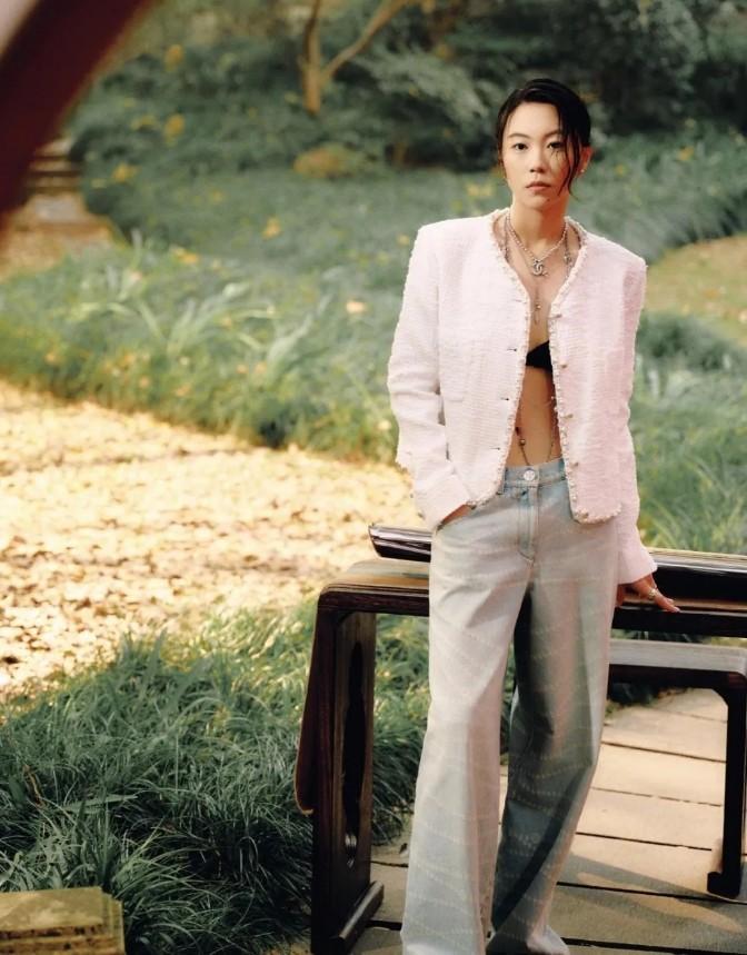 有一說一,竇靖童的表現力確實非常不錯,就像她的媽媽王菲一樣,氣質高級出衆,就像是與生俱來的時尚感一樣,站在那裏就有“超模範兒”,穿白色小香風外套配水洗藍牛仔褲,面無表情也很有吸引力。