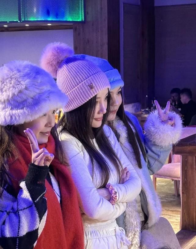 在搭配白色打底衫的時候,李小璐下身配了一條抽繩款闊腿褲,All white的搭配模式太養眼了,完全就沒有沉悶感,尤其是頭頂佩戴的毛線帽,襯托的她臉型更精緻小衫了,和身邊的女生同框,美的不像一個圖層。