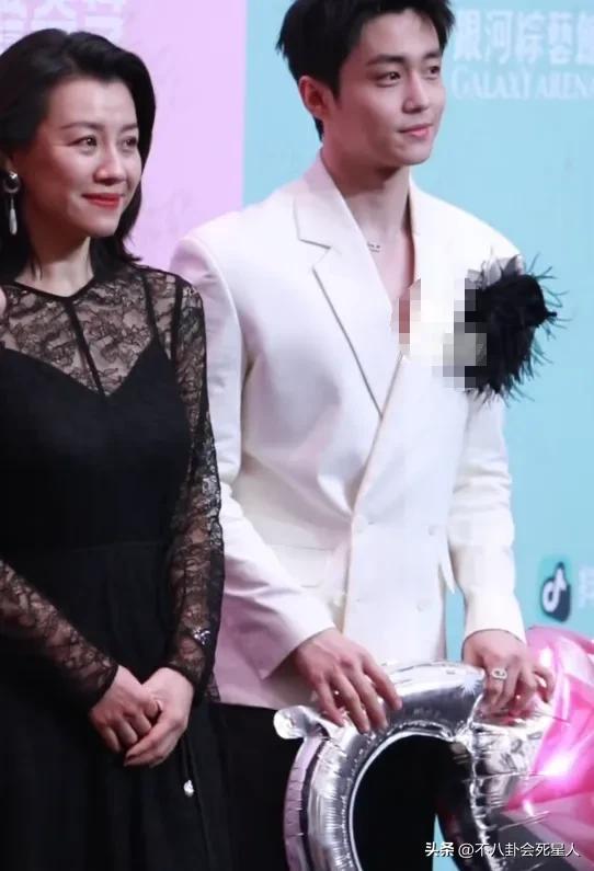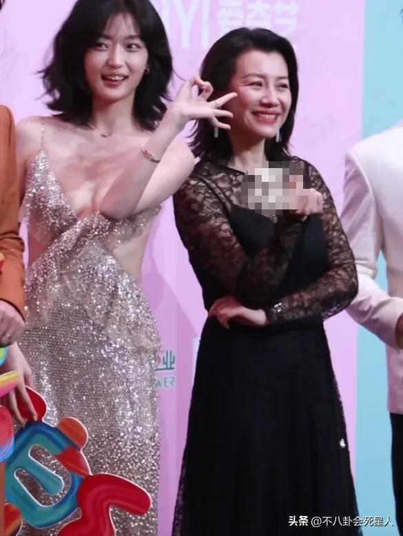 劉琳穿的是黑色禮服,不過是蕾絲鏤空的設計,很符合她這個年紀的優雅但又不失小性感。和年輕女星站在一起也毫不遜色。