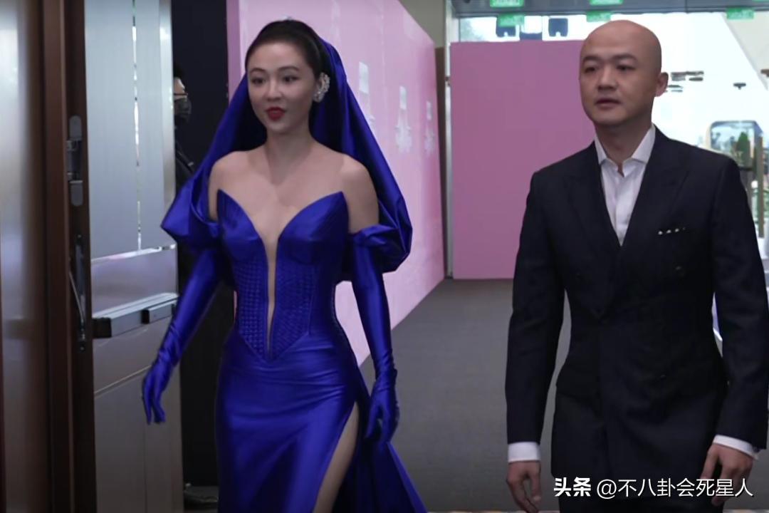 34歲的藍盈瑩的造型也很大氣顯氣質,寶藍色很搶眼,禮服很顯腰身而且設計大氣。