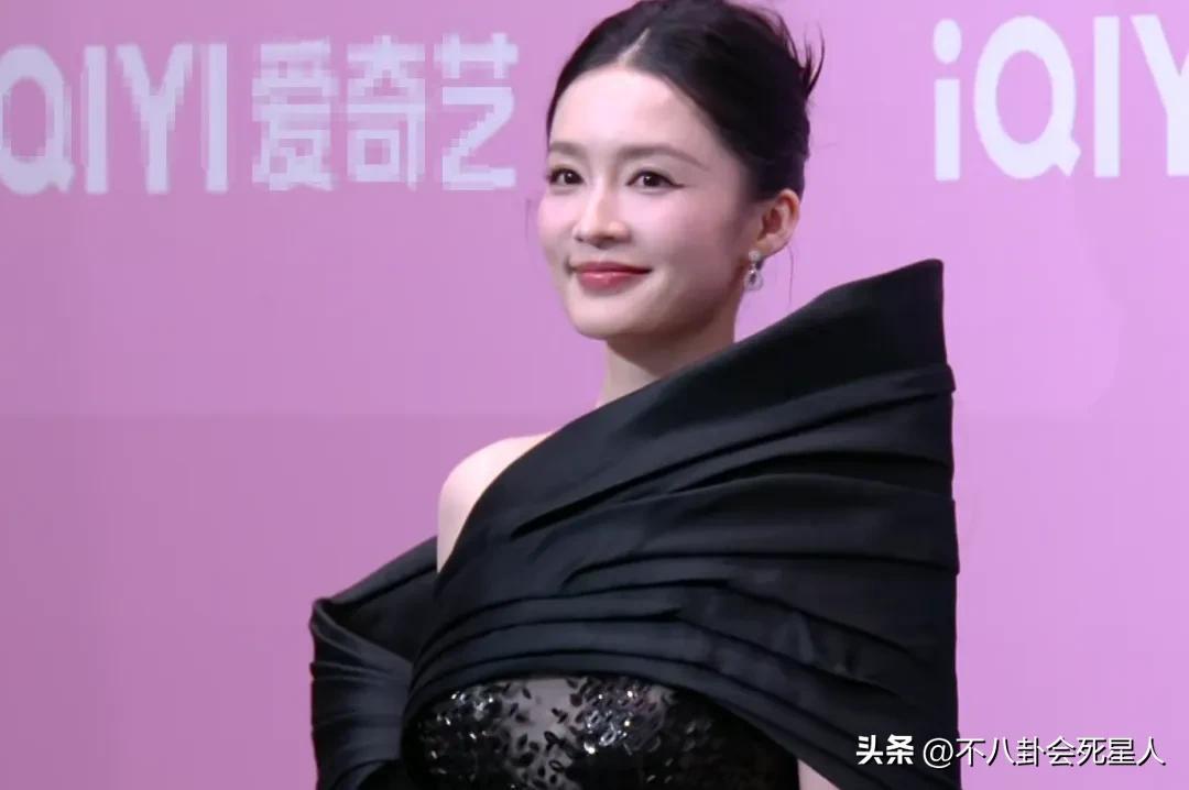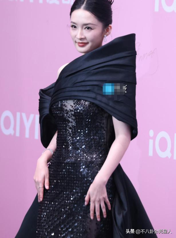 34歲李沁這次選擇的禮服似乎就有點發揮不佳,這條全黑色的禮服在顏色上本來就有點沉重,而且肩膀還有個誇張的設計,讓衣服視覺上顯得更加繁重,反而有點顯老氣了。