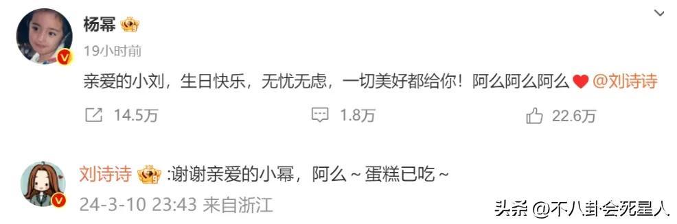 而劉詩詩和楊穎的生日相差不久,楊冪卻十分熱情地爲劉詩詩送上生日祝福。