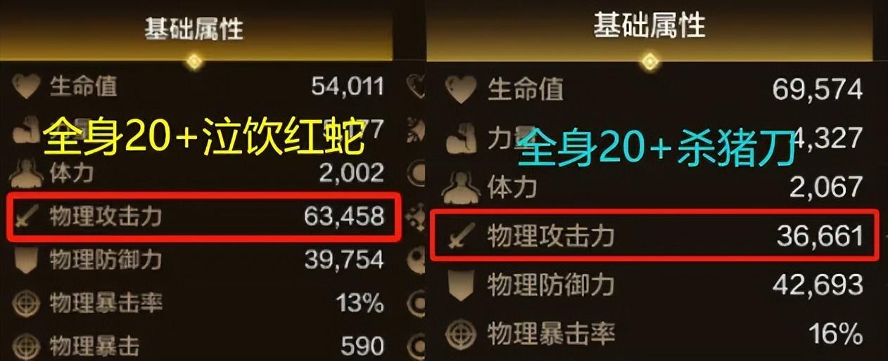 很多人說“泣飲紅蛇”可以爲紅眼增加2萬物攻,實際上還不太準確,它增加的48%雙攻取決於玩家面板;