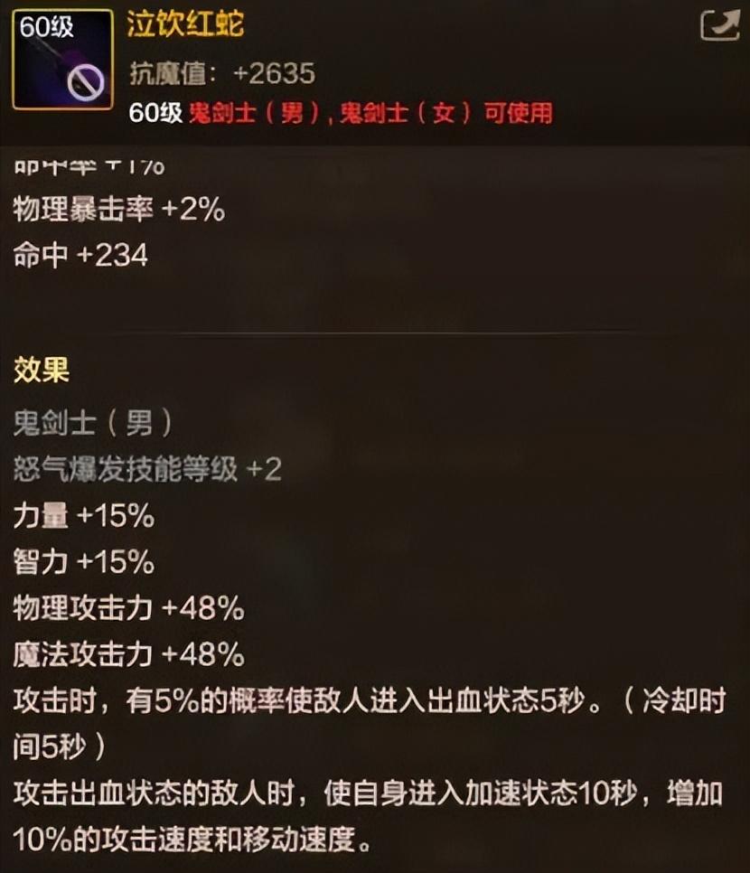 那麼“泣飲紅蛇”至少也算T1級武器,面板高、不喫打造、完美契合紅眼哥!