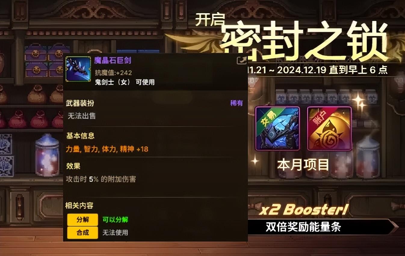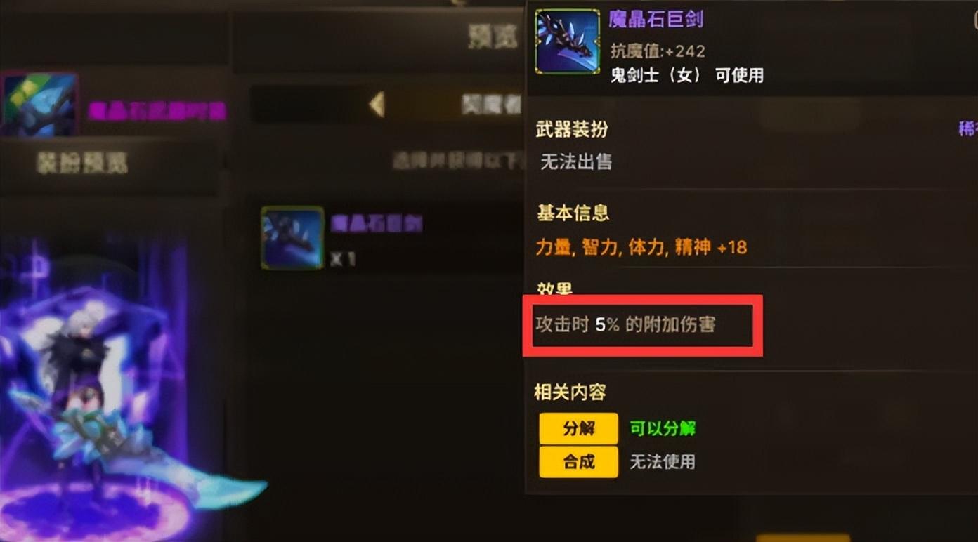 「魔晶石武器裝扮」+18點四維、+5%附加傷害!