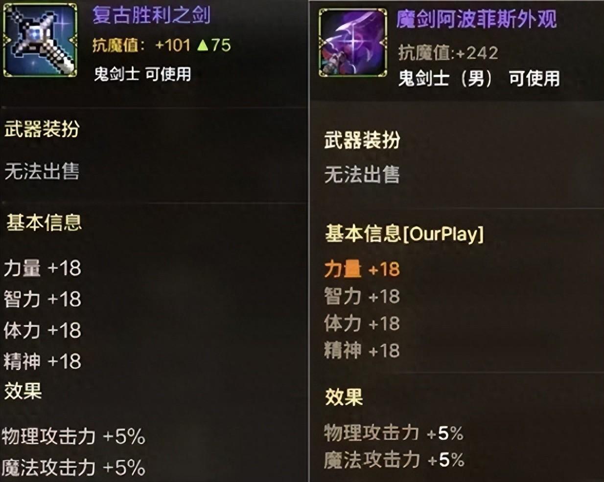 但這些武器的屬性全都是一樣的,+18點四維、+5%雙攻!