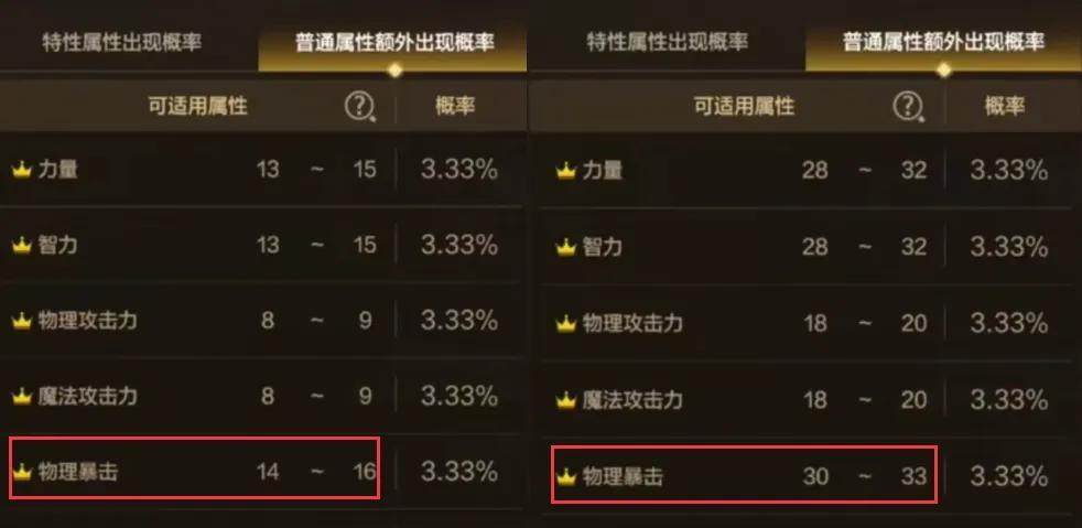 封印石和精髓都可以洗出“暴擊詞條”,並且隨着強化等級升高,暴擊數也會跟隨增加;