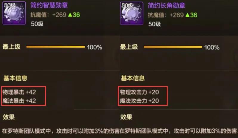 紫色團本勳章可以增加“42物理暴擊”,橫向對比的是44力智和20雙攻,也不算太虧可以接受的。