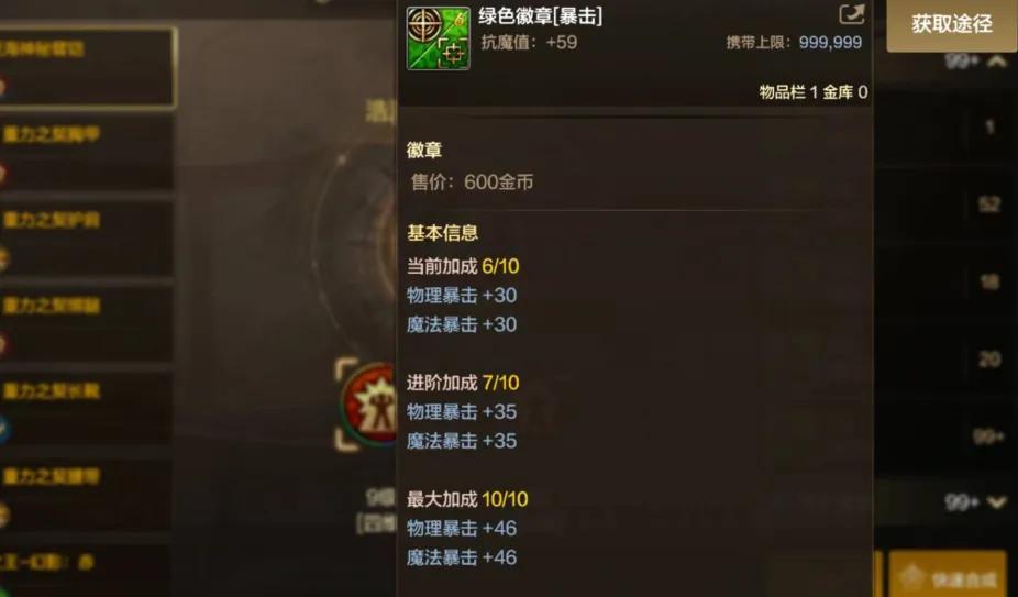 10級綠色徽章可以增加46點暴擊,還是挺不錯的。