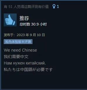 這款遊戲去年上線EA版本時,就已經在國外得到了不錯的反響,只不過當時沒有提供中文版本,因此國內知名度相對小了不少,但這也讓許多中國玩家在評論區留下了“我們需要中文”的評語,也能從側面說明遊戲的人氣: