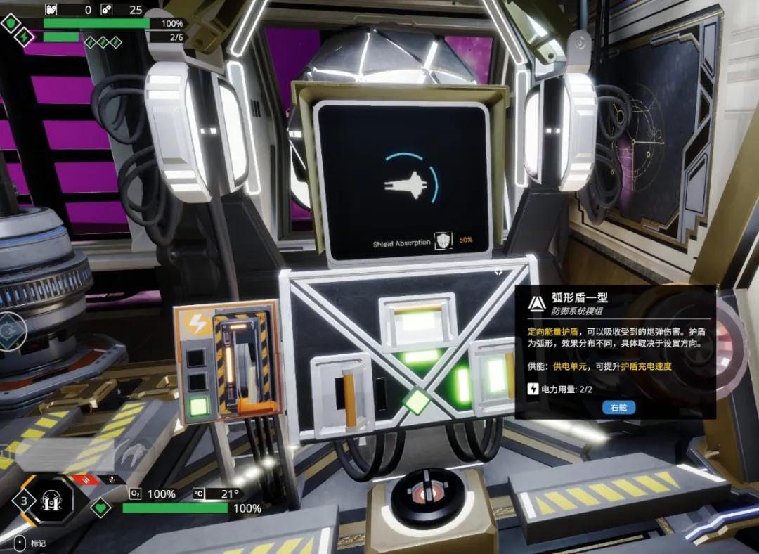 同時激活的護盾數量越多,單個方向上護盾能夠抵擋的傷害就越少,因此戰鬥時最優的解法應該是:由“領航員”隨時用語音向隊友報告飛船哪個方向有敵人,再由負責後勤的船員拉動對應方向的護盾開關,其餘方向保持關閉。