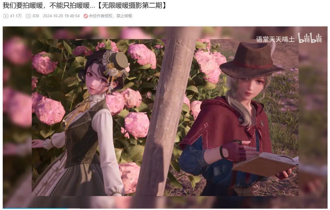 同樣和此前宣發一樣亮眼的,還有拍照系統。雖然調整焦距、光圈、構圖等常規參數已經成爲了現代3A遊戲常見功能,但像《無限暖暖》這樣,鏡頭下角色的動作、表情乃至眼神都層次豐富、表現力十足,服裝甚至會隨風效呈現複雜動態表現的遊戲此前還沒有先例。