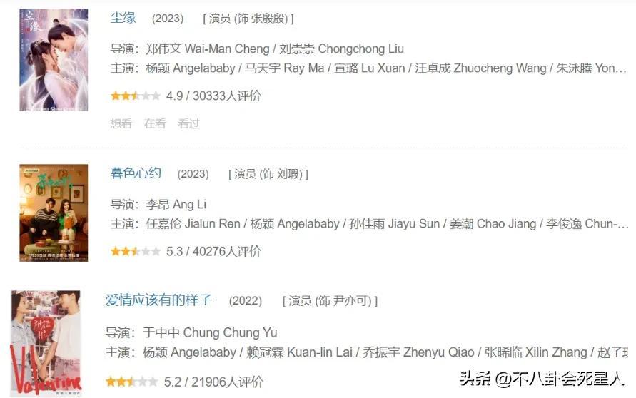 而2022年,楊穎和黃曉明離婚,和黃曉明離婚後,楊穎的資源肉眼可見地下降,除了常駐綜藝之外,她能拿得出手的影視資源幾乎沒有,合作的男星也變成了賴冠霖,馬天宇等非一線當紅男星。