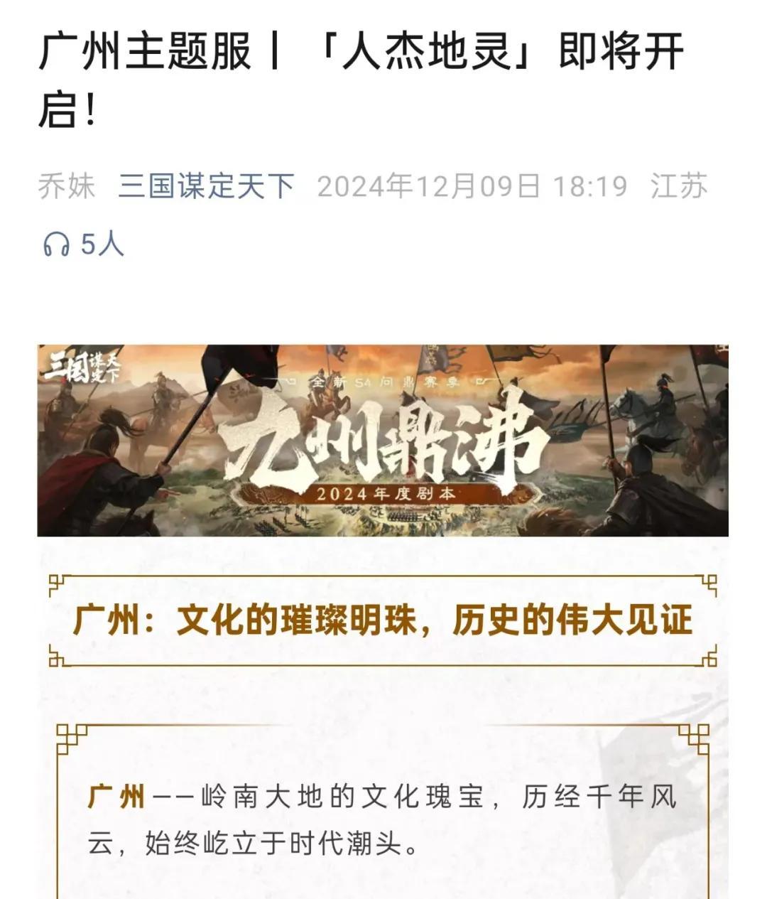 阿里高管說“廣州是蠻夷之地”後,率土和三謀表示將開“廣州服”
