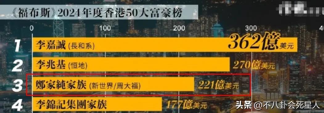 鄭裕彤家族的資產還排在香港50大富豪中的第三位,僅次於李嘉誠和李兆基,鄭家的家族資產高達1000多億元。