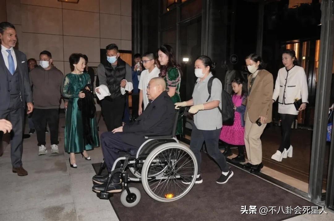 劉鑾雄的輪椅由一位保姆阿姨負責推着,前面還有兩隻手都搭着白毛巾的保鏢。