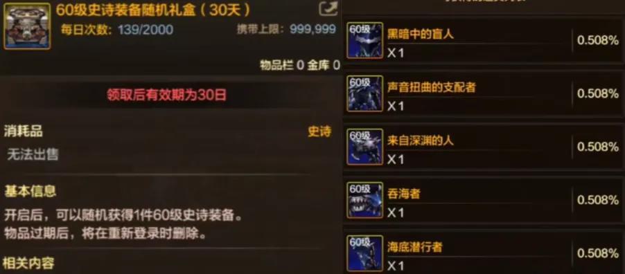 綜上,總計可以拿到4個首飾禮盒,以及1個60級史詩盒子,而且這還是現版本第一個60級史詩盒子,可惜是隨機的!