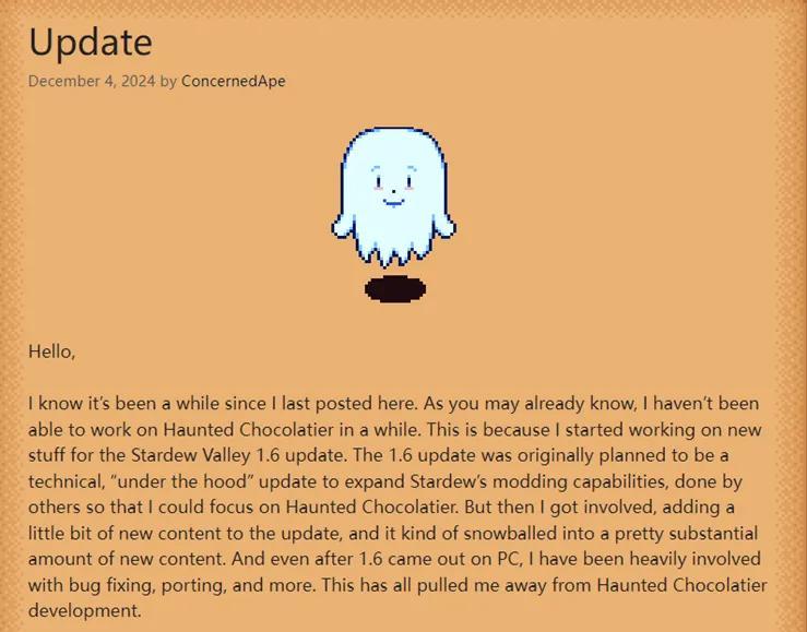 如今,隨着《星露谷》1.6版本的逐漸完善,ConcernedApe能有精力重新回到《鬧鬼巧克力店》的開發工作中了。