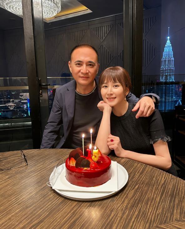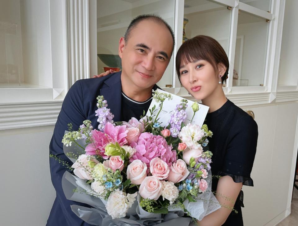 42歲胡靜與老公同框,富豪老公老成大叔,她嬌豔如花嫩似少女
