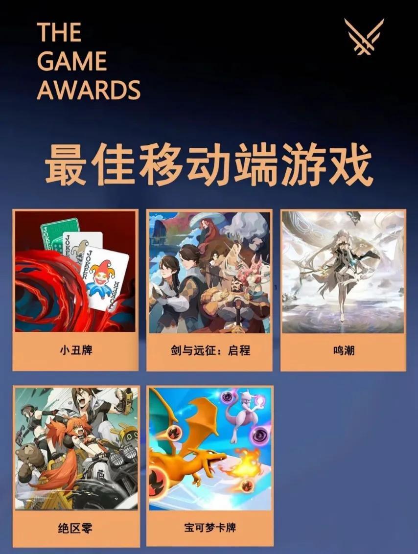 比如今年TGA的最佳移動端獎項,就出現了《劍與遠征:啓程》《鳴潮》《絕區零》佔取五個提名中的三席的場面。