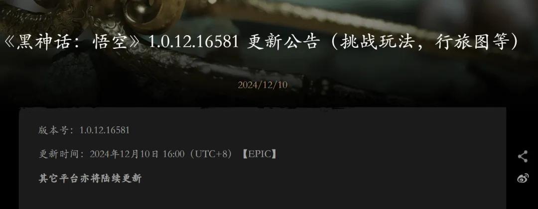 這兩天,《黑神話:悟空》先後在Epic和Wegame平臺上推出了一次前所未有的大更新,除了修補BUG外,還添了不少新內容。《黑神話》發售過去幾個月後,有不少玩家一直在等DLC的消息,而從這次更新的體量來看,也算是先上了一道點心。