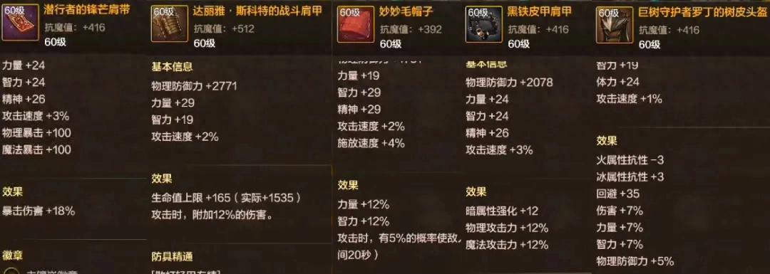 這3件頭肩提升效果都差不多,看看自己缺少什麼詞條,如果走暗屬強最推薦黑鐵頭肩。