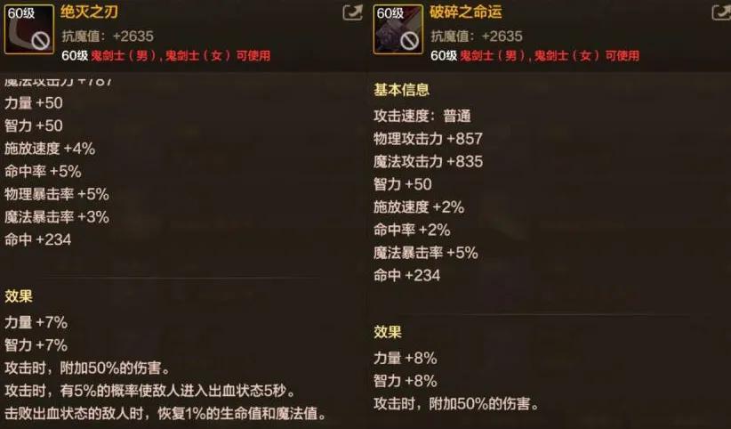 這2把武器屬性都比較相同,核心詞條爲“+50%附加傷害”,這個詞條本身並沒有什麼問題;